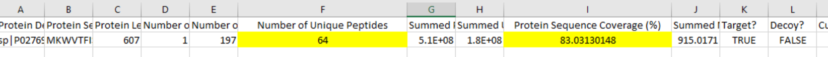 보통 ***.Protein_Groups.TSV파일을 엑셀로 열어서 sequence coverage와 number of unique peptides 를 확인합니다.