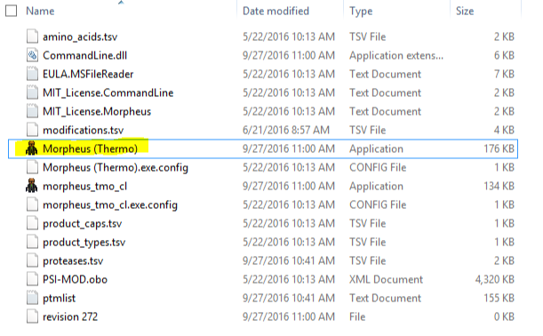 압축파일을 풀게 되면 아래와 같은 파일이 생성되며 추가적인 설치없이 " Morpheus (Thermo)" application 파일을 실행하면 프로그램이 열립니다.