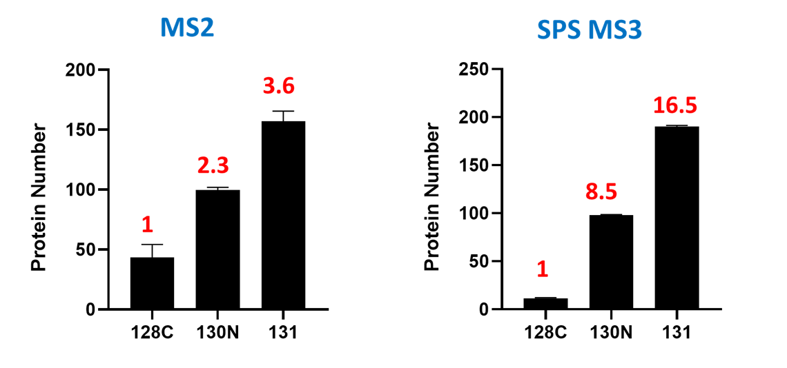 TMT정량분석에 있어서 MS2 와 SPS MS3 분석 비교