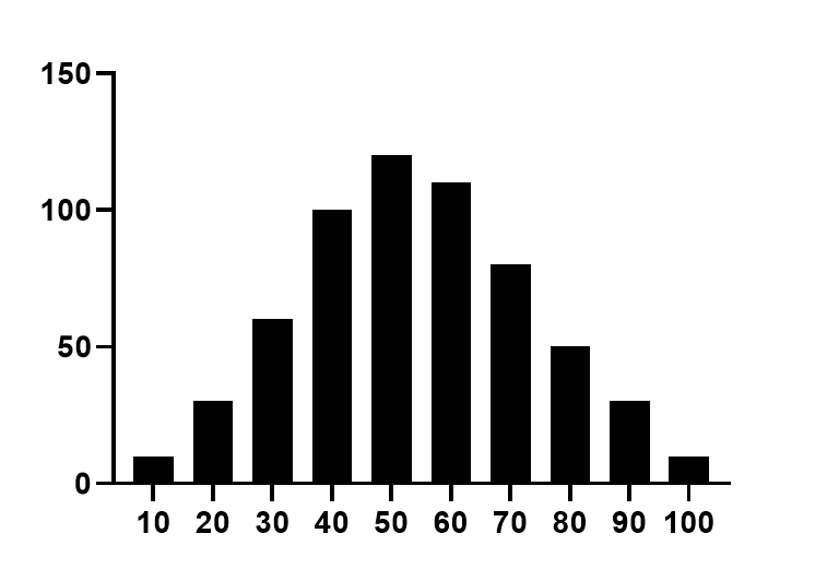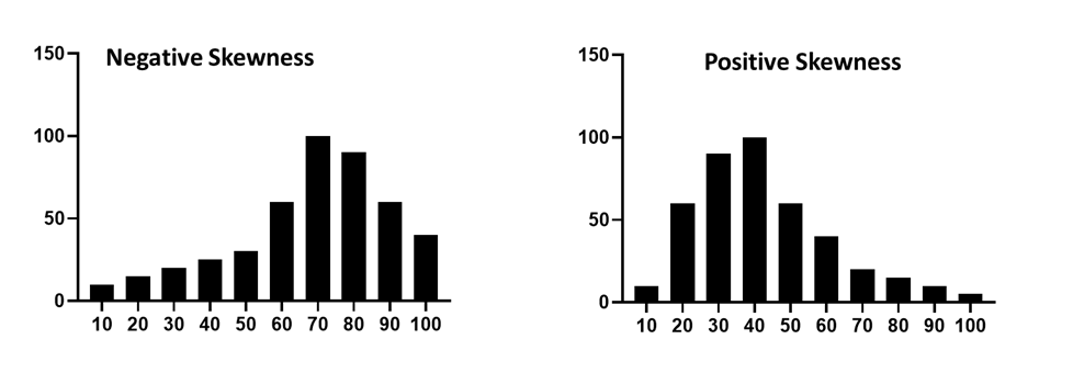 그렇다면 정규분포를 가지지 않는 형태는 어떤형태가 있을까요? 위의 정규분포모양이 아닌 한쪽으로 치우친 (Skewness) 모양입니다. 아래 분포도가 그 예입니다.