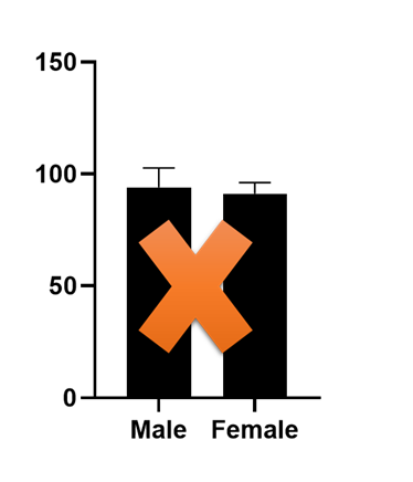만약 암컷과 수컷 코요테의 몸집 길이에 대한 차이를 알아보는 실험을 할 경우 " 암컷과 수컷의 코요테의 몸길이에 대한 차이가 있는가?"를 검증해야 합니다. 보통 우리는 두 그룹에서 얻어진 값들을 이용하여 바 (bar)그래프를 그립니다. 하지만 이 그래프는 앞에서 설명한 두 Assuptions (가정) 성질을 반영하지 못함으로 적절한 그래프가 되지 못합니다. 이 그래프는 두 그룹에서 얻어진 값의 차이를 표현하고 있지만 개별적으로 얻어진 값들의 분포들을 알 수가 없습니다.