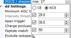 이러한 이유로 한 시료를 다양한 NCE 값을 가지는 method로 분석하기도 합니다. 하지만 stepped NCE를 사용하면 여러번 분석할 필요없이 한번 분석으로 그 효과를 볼 수 있습니다.