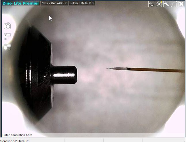 카메라 모양은 기존의 모양과 거의 유사합니다. 하지만 높은 해상도로 인해서 컬럼의 상태를 더 자세하게 볼 수 있습니다. 아래는 실제로 집에서 원격으로 연결한 상태에서 보여지는 화면입니다. Voltage를 끈 상태에서 컬럼 Tip 에 Bubble이 생긴것을 볼 수 있습니다.