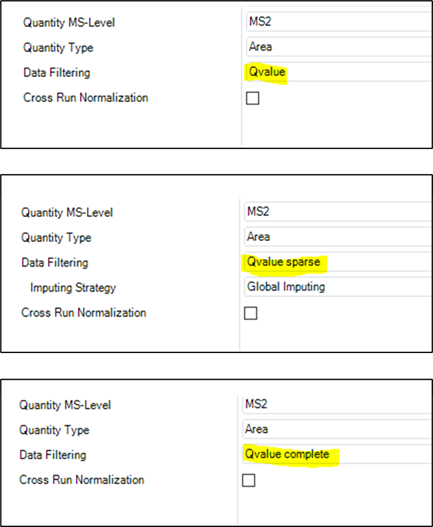 업체측의 조언대로 아래와 같이 Global Normalization을 off 한후 아래 그림과 같이 Qvaule, Qvaule_Sparase, Qvalue_Complete로 분석해보기로 하였습니다.