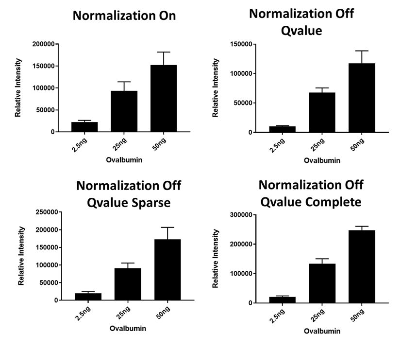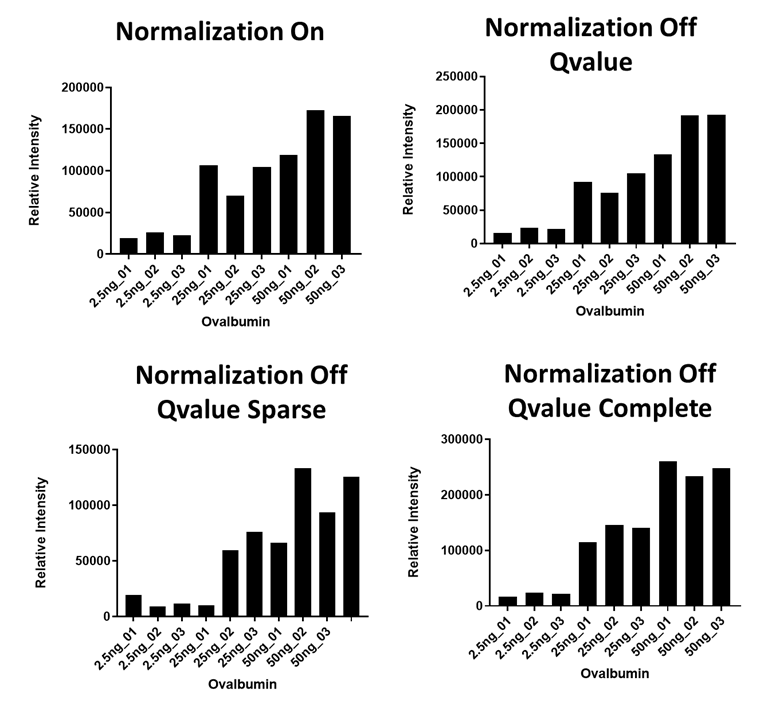 Relative Abundance of Ovalbumin with different Normalization Settings