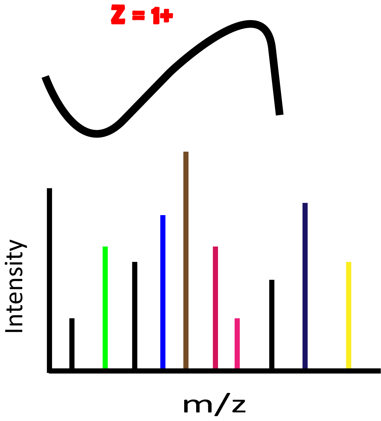 (물론 Single charge 펩타이드가 background 피크보다 Intensity가 높다면 상대적으로 문제는 덜 할것입니다)
