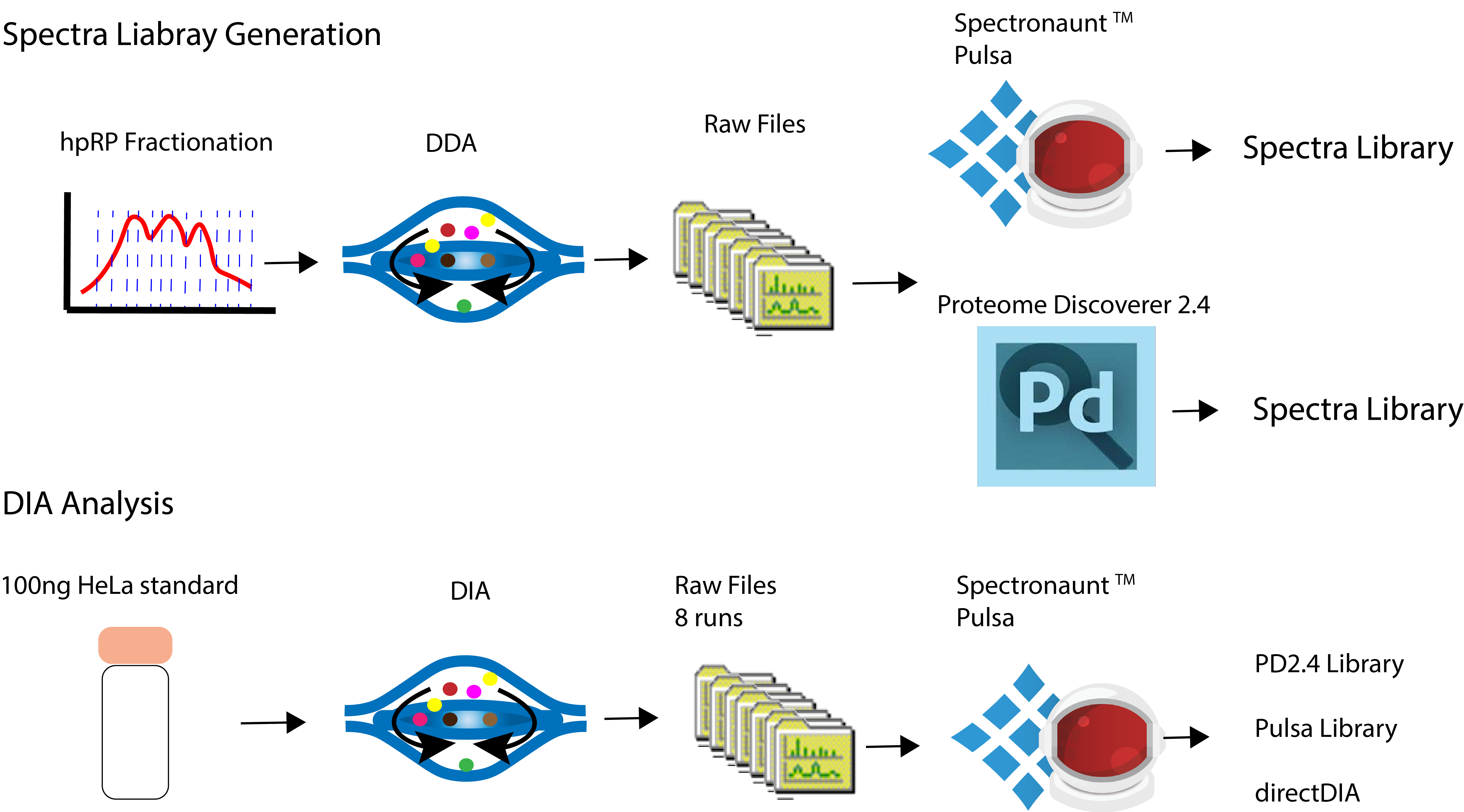 DIA 분석을 위해서는 100ng Hela standard digest(Pierce)를 Q-Exactive HFX로 8번 반복분석한 결과를 사용하였습니다.