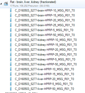 EnclycopeDIA방법에서 사용한 overlapp DIA로 시료를 분석하여 3가지 분석방법으로 데이타를 분석하였습니다. Rat Proteome의 Spectra library는 Spectronaut에서 제공하는 것을 사용하였습니다.