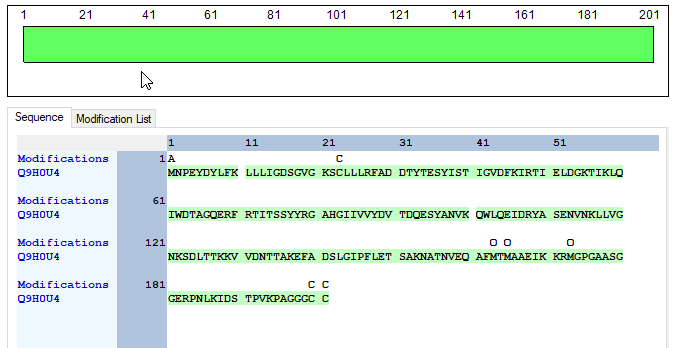 아래는 human cell lysate를 profiling 한후 human database로 검색하여 검출한 단백질중 하나입니다. 아래는 100% Sequence coverge를 얻었습니다.