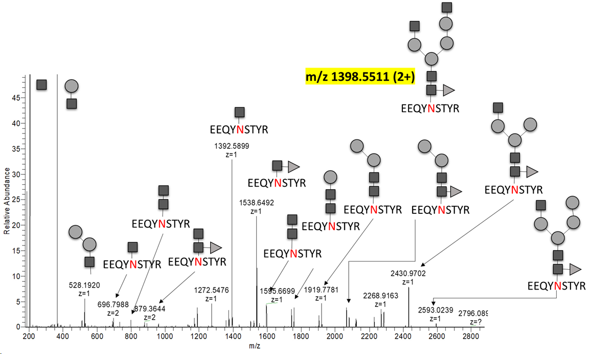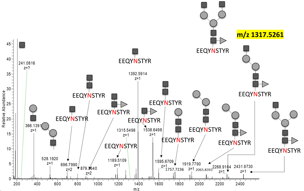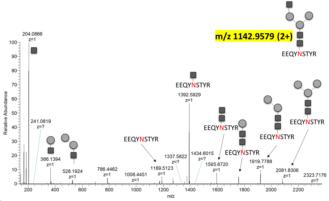 In-source fragmentation (CID) for N-linked peptide Characterization
