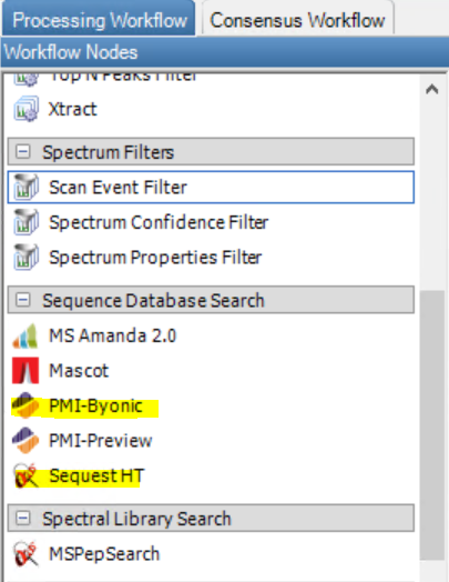 HUPO와 ASMS 학회의 부스에서 보아왔던 Byonic™ 검색프로그램을 30일 trial로 다운로드 받아서 간단히 테스트 해보았다. Byonic™ 자체를 설치해서 검색할 수 있다. 하지만 현재 2개의 Proteome Discoverer 2.3 라이센스가 있기 때문에 Sequest HT에서 찾지 못하는 단백질/펩타이드를 Byonic이 얼마나 많이 찾을수 있는지가 더 궁금했다. 그래서 Byonic를 Proteome Disscoverer에 설치하여 두 검색 엔진 (Squest HT 와 Byonic) 을 동시에 사용하였다.