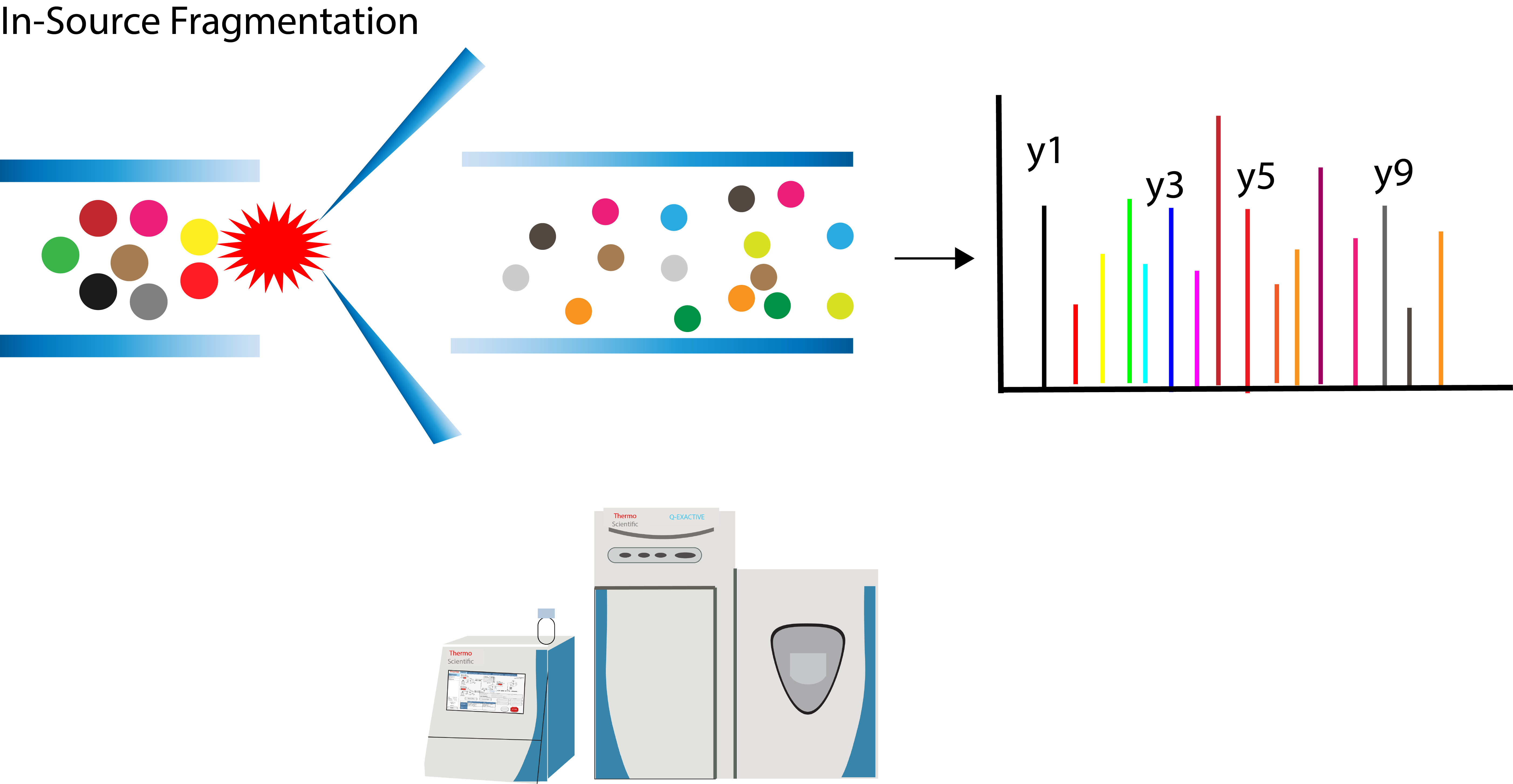 In-source fragmentation 이라는 방법이 있습니다. 일반적으로 펩타이드는 ion source를 거친후 collisio cell에서 gas와 충돌하여 fragmentation 됩니다. 하지만 In-source fragmentation (CID)는 이름 그대로 source 안에서 펩타이들이 fragmentation이 됩니다.