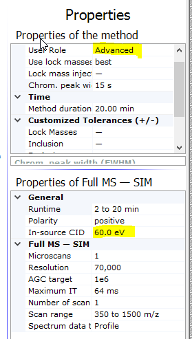 Q-Exactive에서는 아래와 같이 설정을 할수 있습니다. "Advanced" mode 에서 In-source CID값이 보여지며 0-100 eV 사이에서 설정할수 있습니다.