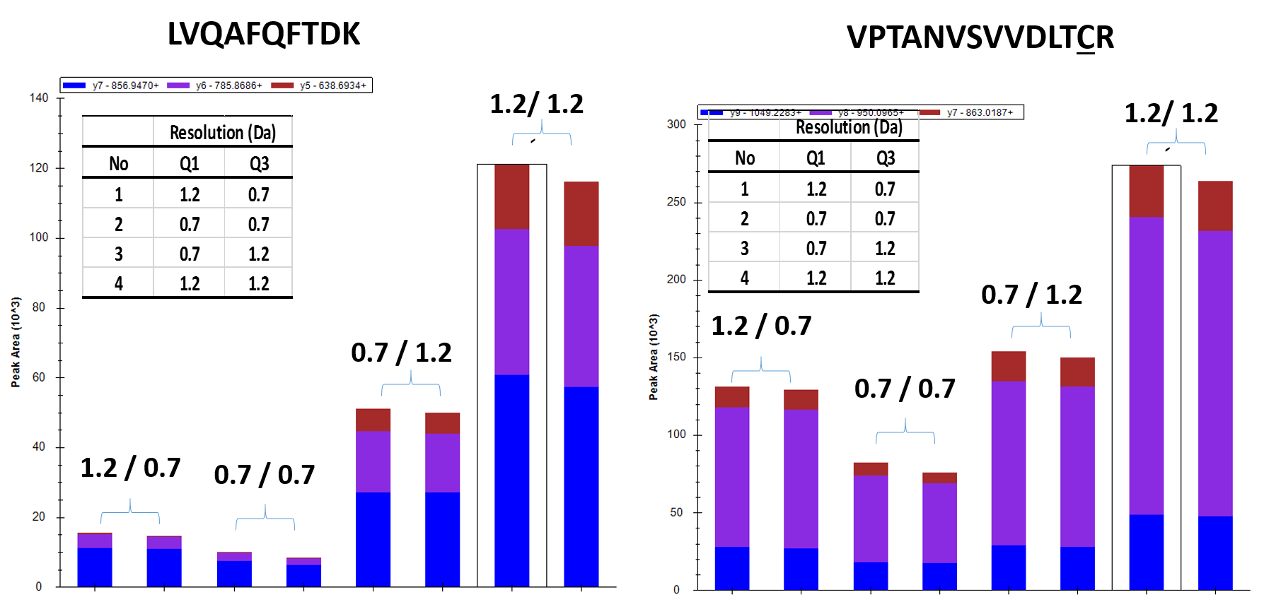 4) Q1 and Q2 Isolation window (1.2 Da vs 0.7 Da)