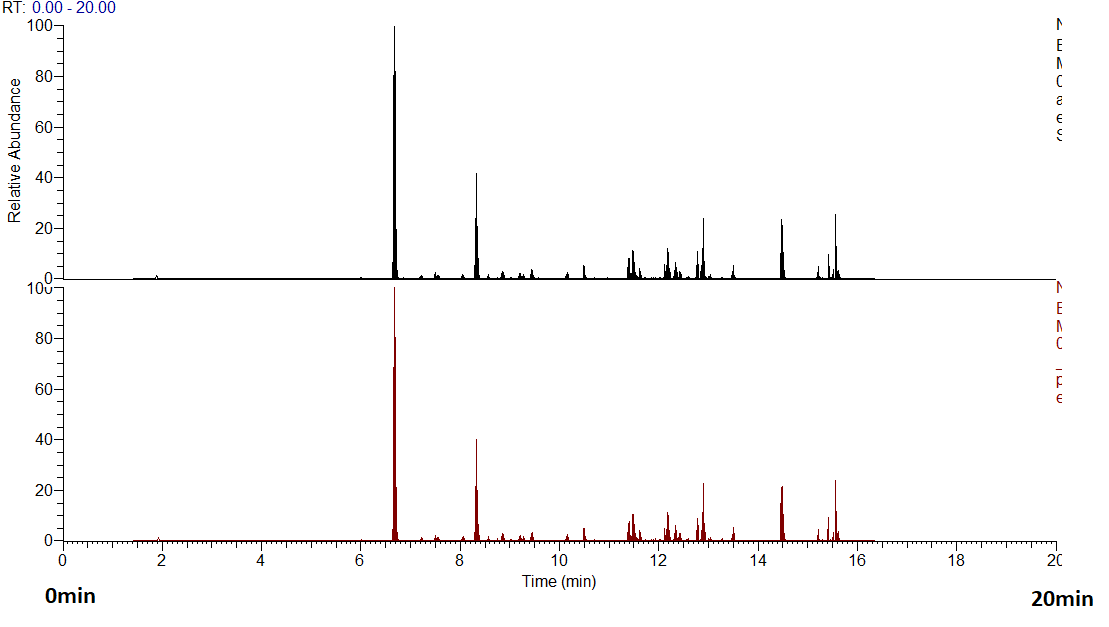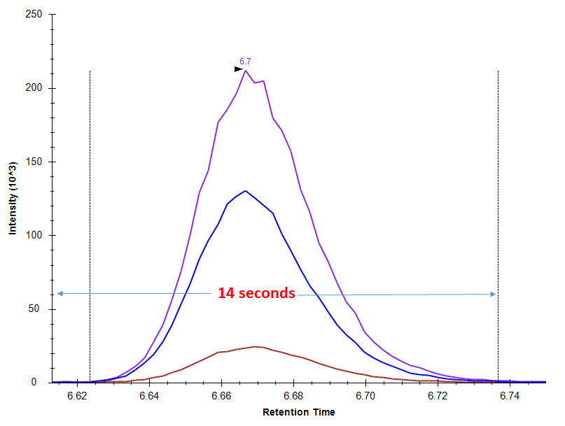 높은 유속과 1.9 µm C18 컬럼으로 인해 높은 재현성과 분리능이 보여졌습니다.피크가 14초 내에서 용리됩니다.