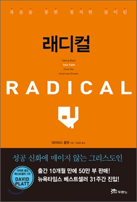 오래간만에 기독교서적을 읽었다. 제목에서 느낄수 있듯이 평범한(?) 크리스챤이 아닌 자신을 유익을 버리고 예수님을 위한 삶을 살기 원하는 저자의 열정이 담겨있다. 대형교회에서의 여러 좋은 프로그램으로 행복한 신앙생활을 하던 저자는 열악한 환경속에서도 예수님을 목숨보다 귀하게 여기며 사는 사람들을 보게 된다.