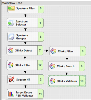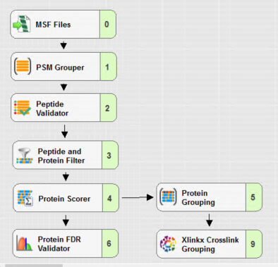 다른 workflow와 특별히 다르지 않고 Xlinkx Crosslink Grouping이 포함됩니다. 아래는 default 값입니다.