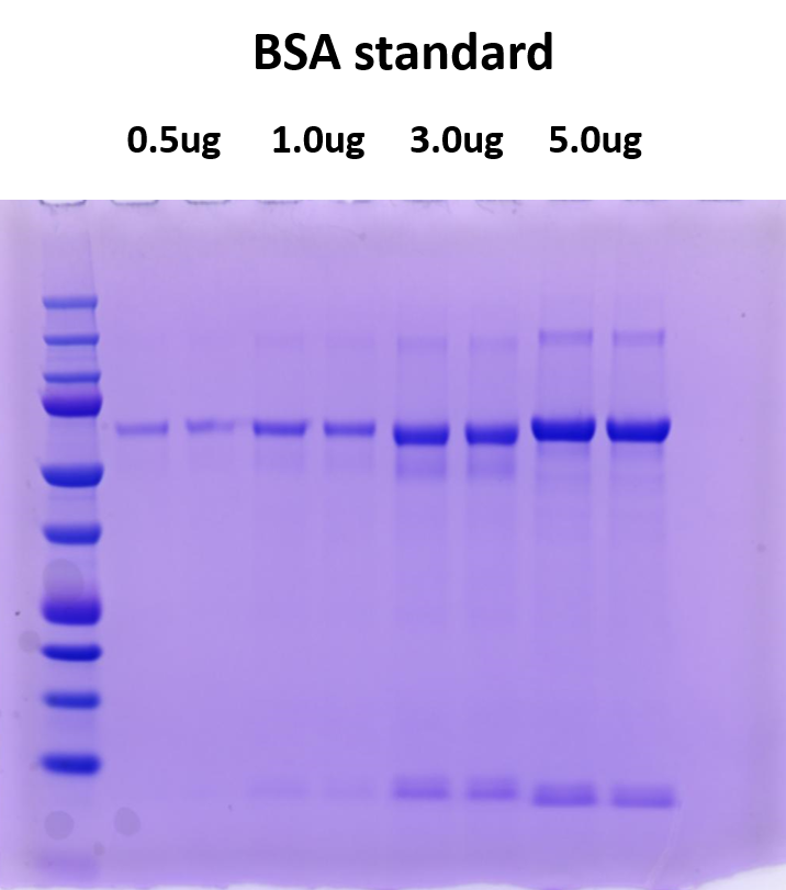 아래 그림은 서로 다른 양의 BSA 결과입니다.