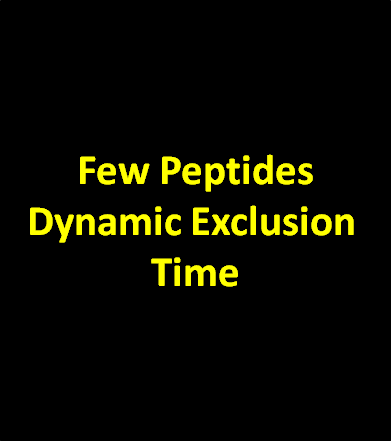 Dynamic exclusion time은 complex 시료에서 최대한 많은 펩타이드를 검출하기 위해 설정하는 파마미터입니다. Intensity가 높은 펩타이드가 존재할 경우 이 펩타이드만 계속적으로 검출이되어 주위에 낮은 intensty를 가지는 펩타이드가 검출이 되지 않는것을 방지하기 위함입니다. Dynamic exclusion time은 보통 LC peak의 넓이에 따라 조절 합니다. 일반적으로 30~60초 정도를 설정합니다. 이렇게 하면 일반 nano LC에서 피크 한개당 보통 한번 혹은 두번정도 MS/MS를 수행하게 됩니다. 하지만 단일 혹은 몇개의 펩타이드를 Data-dependent acquisition 으로 분석할때는 dynamic exclusion time을 짧게 해서 분석합니다. 이 경우 적은 수의 펩타이드들이 여러번의 MS/MS가 수행됩니다.