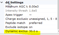 최근 장비의 경우 감도와 속도가 아주 좋기때문에 이전에 비해서 dynamic exlusion time에 따라 검출되는 펩타이드의 수가 크게 영향을 받지 않습니다. 하지만 시료의 complexity가 LC gradient (특별히 피크 넓이)에 따라 조절을 해주게 되면 추가적인 결과를 얻을수있습니다.