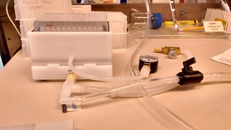 실제로 Vacuum Manifold와 C18 plate 가 장착된 모습입니다.