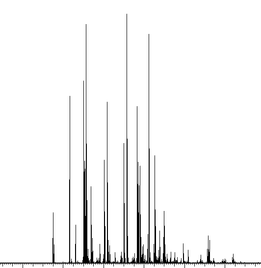 위의 방법으로 Propionylation이 된 Histone 시료를 분석해보았습니다. 아래는 Base-peak chromatogram입니다.