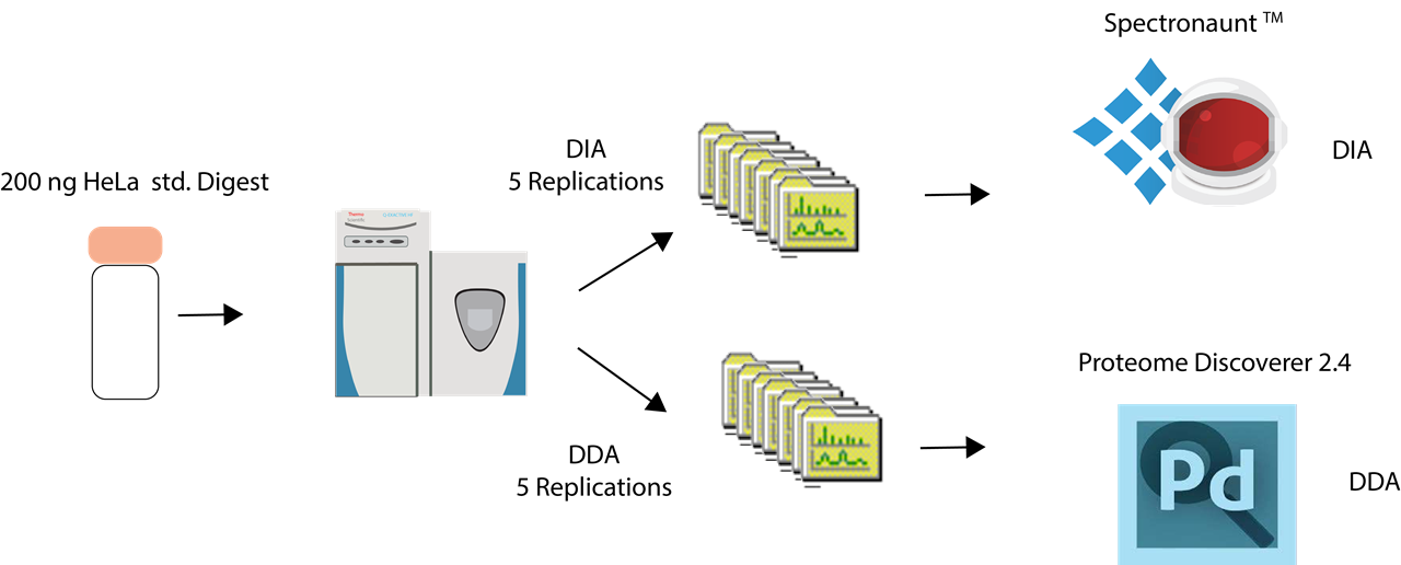 Biognosys Spectronaut의 Pulsa, directDIA를 이용한 DIA 검색능력 비교