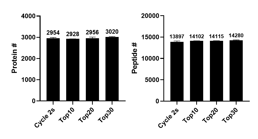 특별히 검출된 단백질과 펩타이드의 수에서 차이가 없습니다. 약 3000개 내외의 단백질이 검출되었습니다.