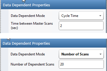 먼저 Data Dependent Mode 에서 cycle time과 몇가지 서로 다른 scan number를 사용하여 비교해보았습니다.