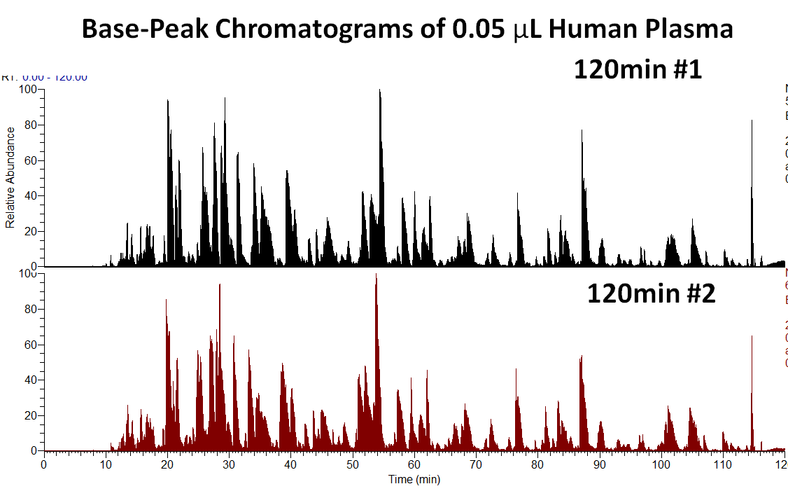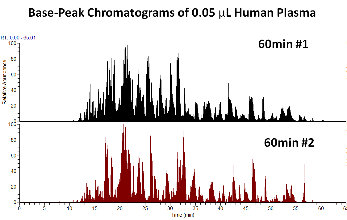 0.05 µL Human Plasma with 60 min and 120 min LC gradient