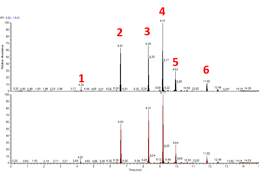 Skyline 프로그램을 통해 분석해보니 5개의 서로다른 농도중 하위 2~3개는 좋은 감도로 검출되지 않았다.