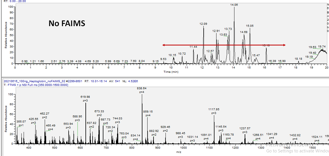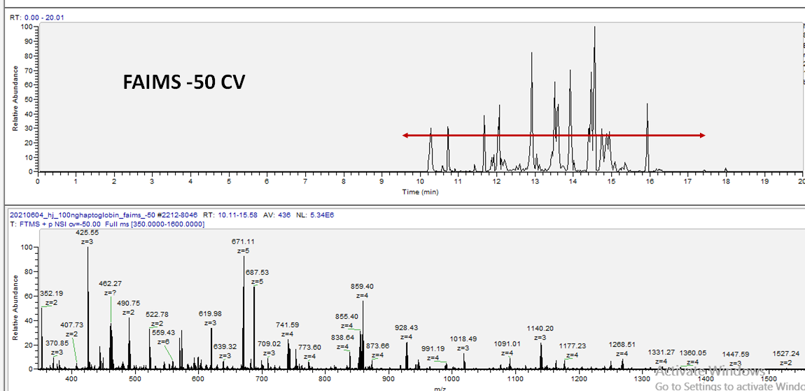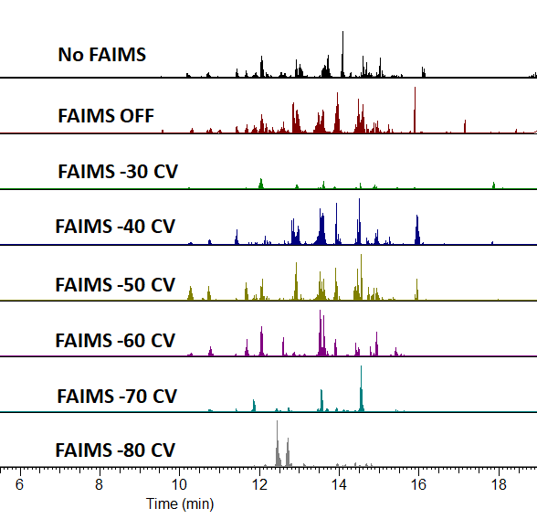 펩타이드 분석에 있어서 FAIMS의 큰 장점중 하나는 CV값에 따라 선택적으로 펩타이드를 검출할수 있다는것입니다.