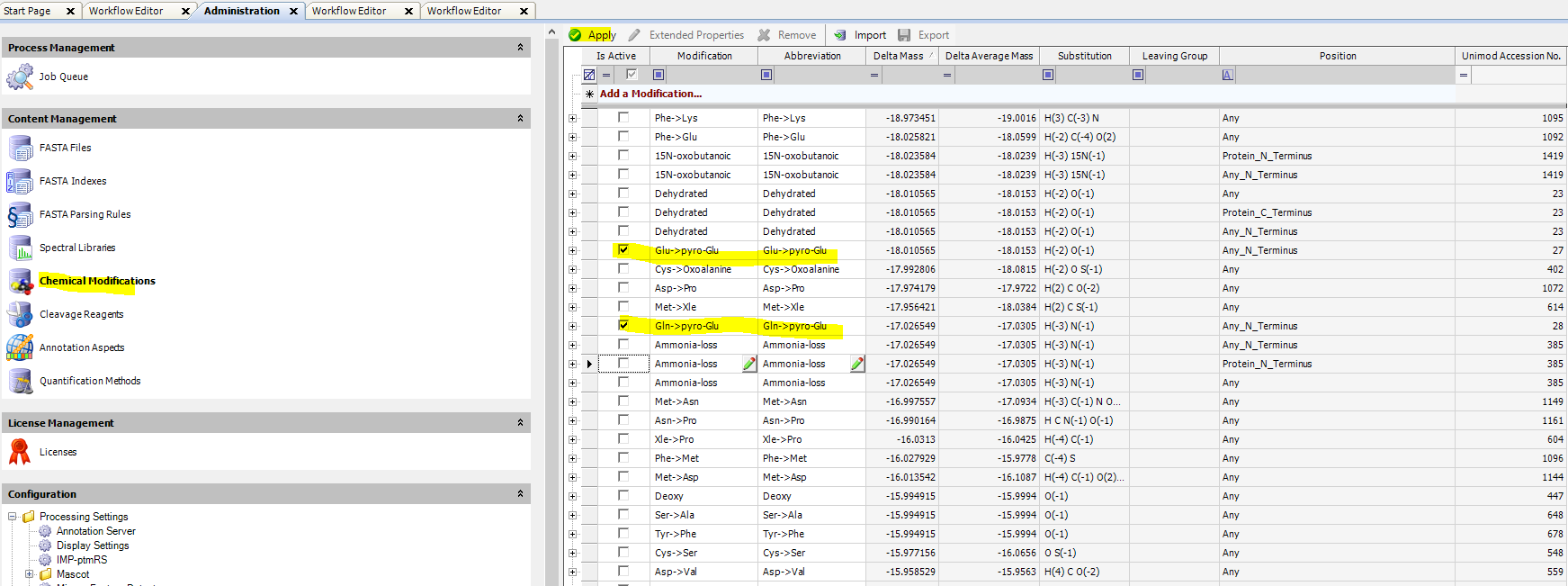 Proteome Discoverer에서 N-terminal pyroglutamate modification 설정