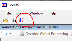 아주 간단한 프로그램을 이용하면 작업을 하는데 있어서 시간을 많이 줄일수 있습니다. SeeMS를 프로그램은 검출된 펩타이드에 대해 y, b 이온이 표기된 스펙트럼을 자동으로 생성해줍니다. 물론 Proteome Discoverer와 같은 단백질 검색프로그램으로 검색후 얻을수 있습니다. 하지만 이러한 프로그램을 사용할수 없는 상황에서는 SeeMS 프로그램으로 간단히 만들수 있습니다. 또한 검색 프로그램이 없이 raw파일에서 본인이 원하는 펩타이드가 검출되었는지 확인하는데도 사용할수 있습니다.
