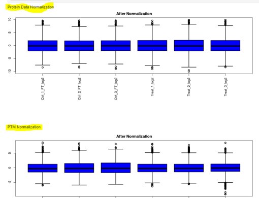 Phosphorylation 분석과 같은 PTM 정량분석의 경우 해당 PTM만을 선택적으로 회수한후 분석하는 경우가 많습니다. 즉 대부분의 펩타이드는 분석전에 제거가 됩니다. 선택적으로 회수된 펩타이드만을 정량분석을 하기 위해서는 추가적인 normalization이 필요합니다. 실제 PTM 펩타이드가 선택적으로 번화하였는지 아니면 단백질자체의 변화에 의해 변화했는지를 확인해야 합니다. 즉 단백질의 양은 변화하지 않았지만 특정 PTM펩타이드의 양이 변화했다면 “특이적인 변화”라고 말할수 있습니다.