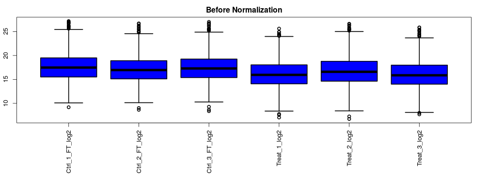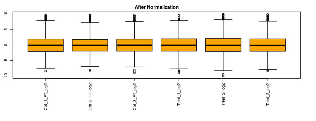 상대적인 정량분석을 위해서는 각 시료간의 normalization단계를 거쳐야 됩니다. 이 프로그램은 검색결과에서 얻어진 상대적인 정량값에 대해서 normaliation을 다시 수행하여 다음단계의 분석을 진행합니다. Boxplot 그래프를 통해 normalization 여부를 확인할수 있습니다.