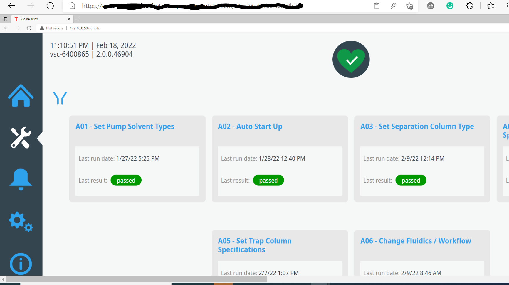 HPLC는 제가 제일 갖고 놀기 좋아하는 장비중 하나입니다. 특히 Nano UPLC는 사용과정에는 Troubleshooting이 아주 많지만 직접 해결한후 정상적으로 작동할때의 즐거움이 있습니다. 많은 연결선이 복잡하게 연결되어 있어서 문제가 생긴곳을 찾는데는 어느정도 논리가 필요합니다. 그렇지 않으면 필요없이 부품을 바꾸는 경우가 많습니다. 가장 쉬운방법이지만 돈이 많이 들어갑니다. 또한 체크하는 과정에서 여러 연결선을 연결하고 끼우다 보면 없던 문제도 새롭게 발생합니다. 즉 증상을 파악한후 최소한의 연결선을 빼서 체크를 해야 합니다. 하지만 Vanquish Neo 는 이렇게 수작업이 제한되어 있습니다. Script를 이용하여 전과정이 자동으로 체크합니다.
