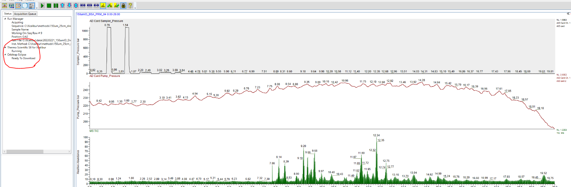 아래 그림과 같이 질량분석은 끝났지만 LC 는 Equibrirum이 진행중에 있습니다.