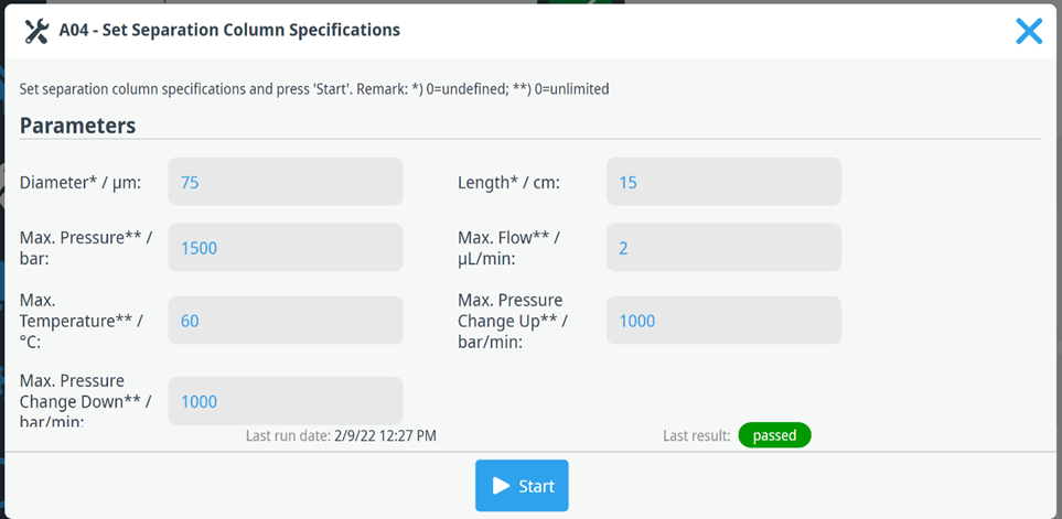 Vanquish Neo 장비의 특징중 하나는 모든것이 통합적으로 연결되어 있는것입니다. 그 예로 시스템에 장착된 LC 컬럼의 규격을 입력을 해야 됩니다. 컬럼의 내경, 길이, 그리고 견딜수 있는 압력등을 입력합니다. 그러면 시료를 주입하는 과정에서 컬럼 Washing, Equilibrium 등에 소요되는 Volume을 자동적으로 계산되어 적절히 조절합니다.