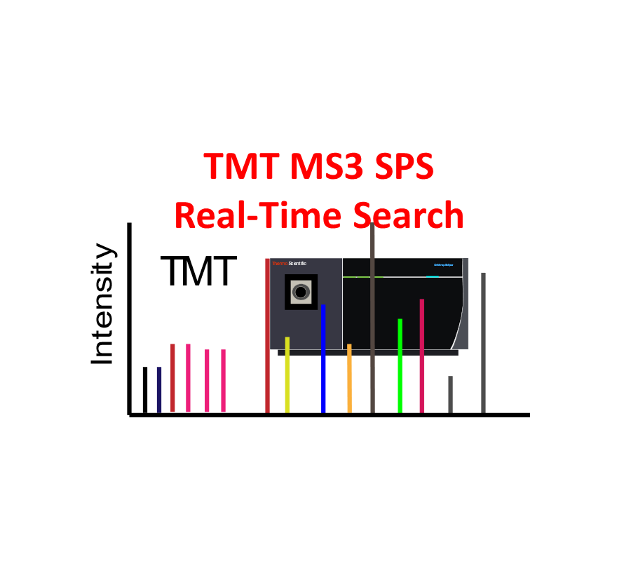 최근 논문에 발표된 대로 Orbitrap Eclipse에는 TMT 분석에 있어서 Real-time search 기능이 있습니다. 용어 그대로 분석중에 바로 검색이 진행됩니다. 진행속도는 약 5ms 정도가 됩니다. 검색은 Open source인 Comet search engine을 사용합니다. 기존의 MS3 SPS에서는 필요없이 MS3를 수행하거나 수행하더라도 Quality가 낮은 스펙트럼이 많이 생성되었습니다. 하지만 Real-time search를 통해 이러한 부분이 보완이 되었습니다. 이것은 크게 2가지 큰 유익이 있습니다.