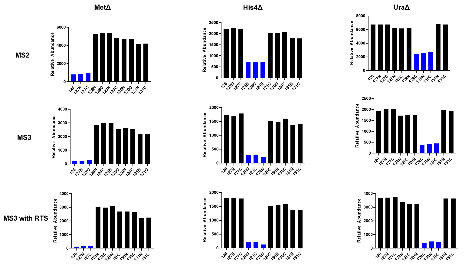 Relative Abundance (MS2, MS3 SPS, MS3 SPS with RTS)