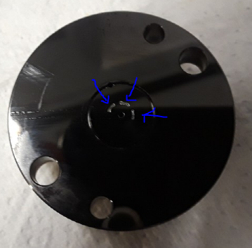 nano UPLC 시스템에서는 작은 scatch (때로는 coating이 벗겨지기도 함)에도 상당한 leak를 발생함으로 반드시 교체해주어야 한다. 아래는 Easy nLC -1000 (6 port-valve) 와 Dionex UltiMate™ 3000 UHPLC Systems (10-port valve)의 stator 안쪽에 scratch가 된 사진이다 (파란색 화살표).