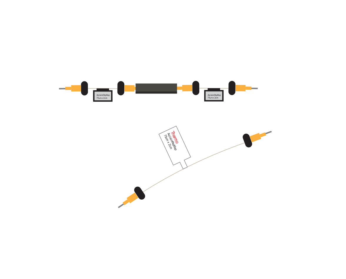 Nano analytical column은 보통 실험실에서 in-house 형태로 만들어 사용하지만 상황에 따라서는 미리 만들어진 Trap-column을 구매해서 사용하는 경우도 많습니다. 실험실에서 만들어 쓰는 trap-column의 경