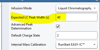 오래전이지만 Thermo 사의 specialist로 부터 Expected LC peak Widths 값을 적절히 정해줘야 된다고 전해들었습니다.
