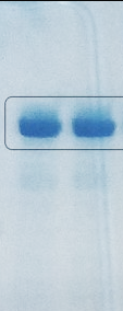 참고로 0.5 ug 정도의 진하기는 단백질 정성용으로 매우 적절합니다. 만약 PTM 분석이 요구될 경우 최소 3.0ug 에 해당하는 진하기를 요구합니다. 물론 그 이하도 가능하지만 첫번째 주입시 결과가 좋지 않을 경우 방법을 바꿔서 2~3번 더 시도해 볼수 있는 충분한 양이 필요하기 때문입니다. 한 예로 아래 이미지는 한 분석외뢰자가 PTM 분석을 위해서 보낸 SDS-PAGE 이미지의 일부분입니다. 이정도의 양이면 band당 5~10 ug 이상이 될것입니다. 이 밴드로 인산화(Phosphorylation) 단백질을 성공적으로 검출하였습니다.