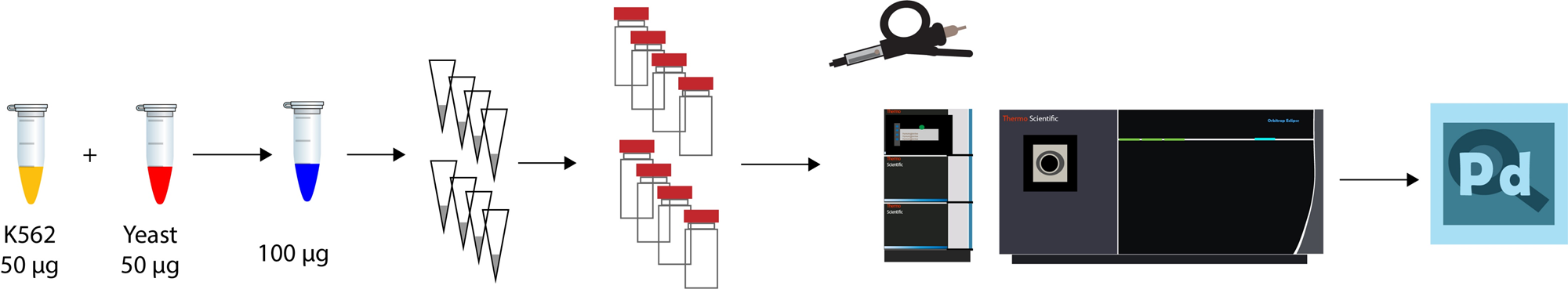 Promega사의 Human (K562) 와 Yeast extract를 Digestion 한후 각각 50 µg을 합쳐서 100 µg을 분획합니다.