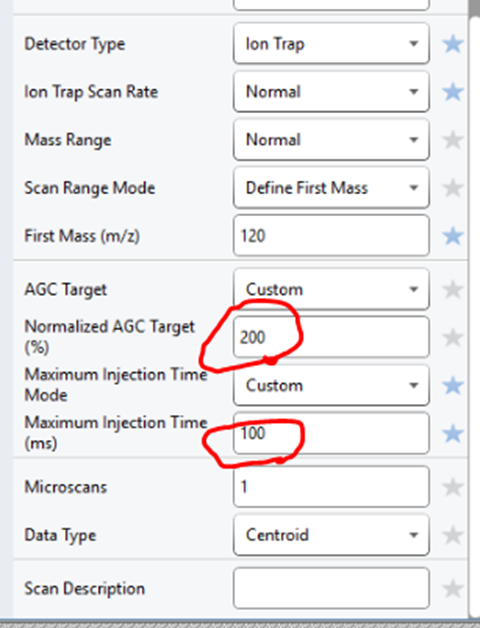 1ng 는 상당히 적은 양이기 때문에 상대적으로 높은 값의 AGC 와 Maximum Injection time으로 설정을 하였습니다.