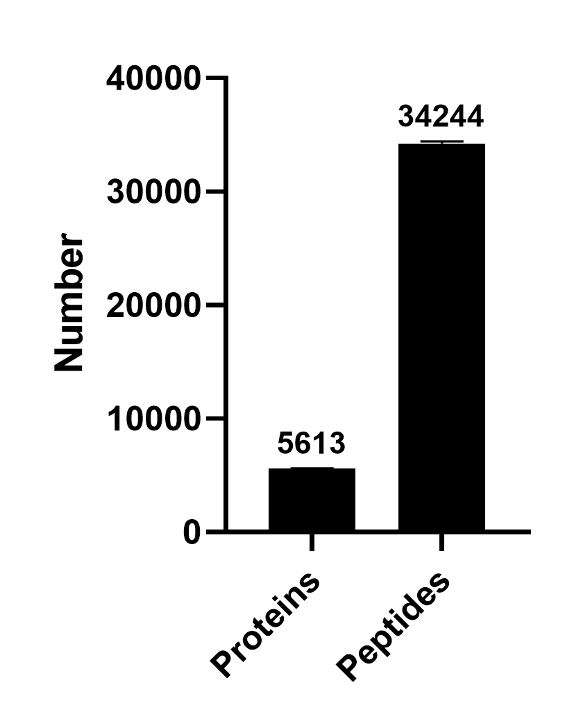 Orbitrap Eclipse와 FAIMS(120min LC time)를 이용하여 200ng HeLa standard에서 약 5613개의 단백질검출