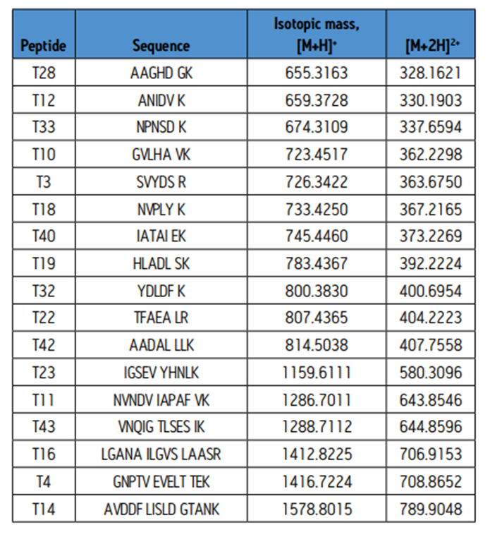 - Waters 사의 MassPREP Phosphopeptide Standard Enolase는 Phosphopetide분석을 처음 시작하는 사람들에게 유용한 standard입니다. Enolase 단일 단백질에 해당하는 펩타이드와 4가지의 합성된 Phosphopeptides (Enolase 유래)가 포함되어 있습니다.