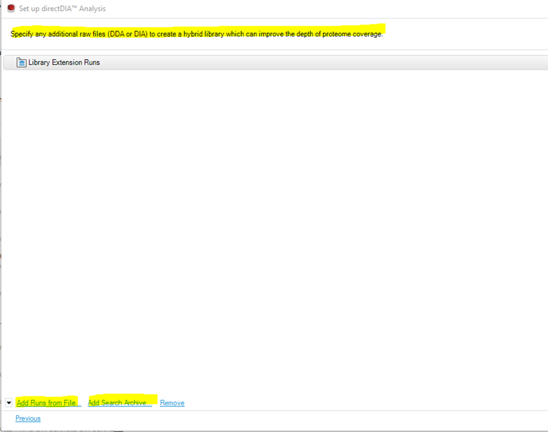 - 이전 버전에서는 DirectDIA분석시 해당 protein sequence를 첨가한후 분석을 합니다. 이번 버젼에서는 DIA 검색시 기존에 분석했던 DDA raw 혹은 기존에 얻은 DIA 결과를 추가할수 있습니다.